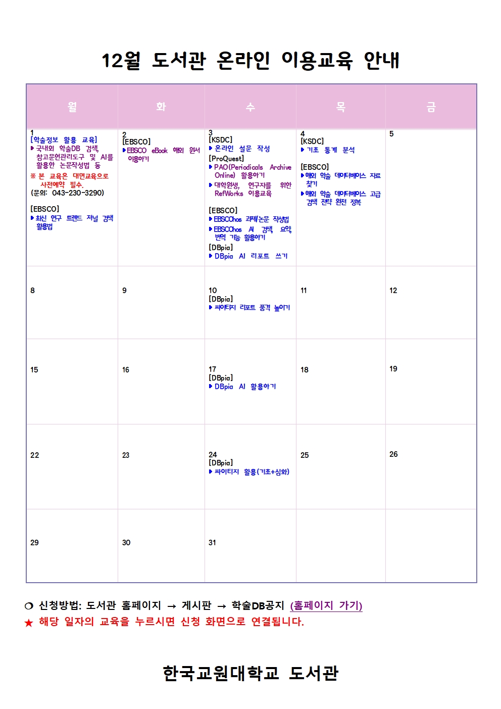 | [도서관] 12월 온라인 학술정보 이용교육 안내 | |