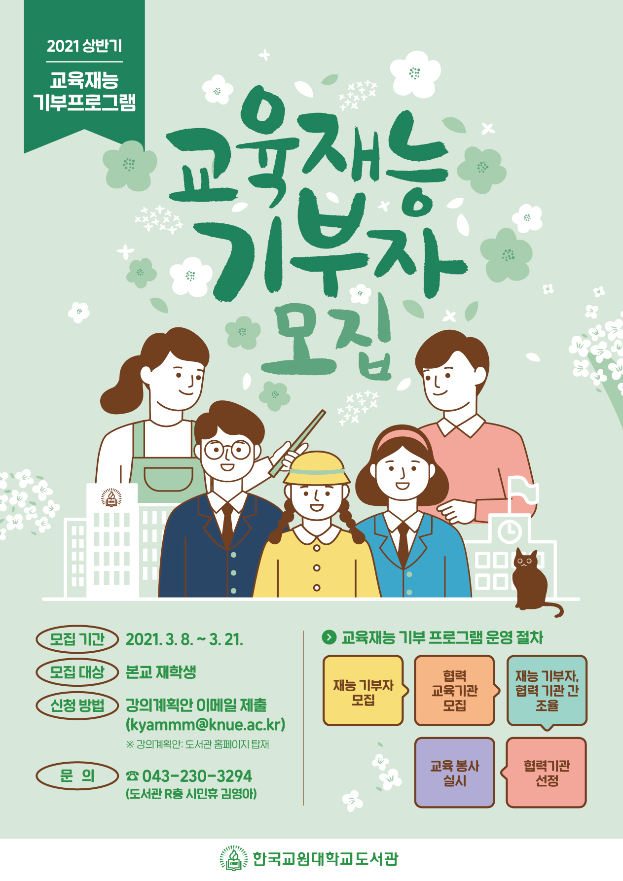행사안내 홈으로 공지사항 행사안내 홈 공지사항 학과소개 학사정보 공지사항 English Introduction 행사안내 학부 대학원 행사안내 공유하기 인스타그램 페이스북 X(트위터) 유튜브 프린트 행사안내 상세보기 - 제목, 내용, 파일, 조회수, 작성일 정보 제공 상반기 교육재능 기부자 모집 안내 작성일 : 2021-03-05 조회 : 232 🔗 짧은 주소 보기(Beta) 파일 jpg 문서 2021년도 상반기 교육재능 기부자 모집 홍보포스터.jpg 목록 게시물삭제 광고 반복작성 욕설 본인삭제 게시물삭제 이전글 교육고전 독서동아리 모집 다음글 [KIRD] 이공계 대학(원)생 경력개발 온라인 멘토링