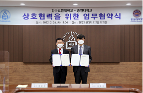 우리 대학은 2월 24일 11시 중원대학교(총장 황윤원)와의 업무협약(MOU)을 체결했다.
