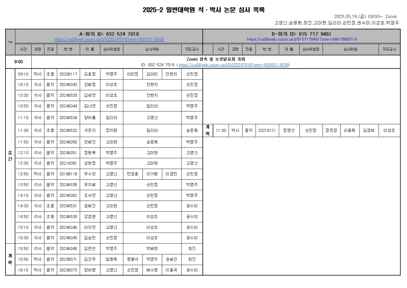 2025-2 일반대학원 석·박사 논문계획서 및 중간심사 발표 일정을 다음과 같이 알려드립니다.